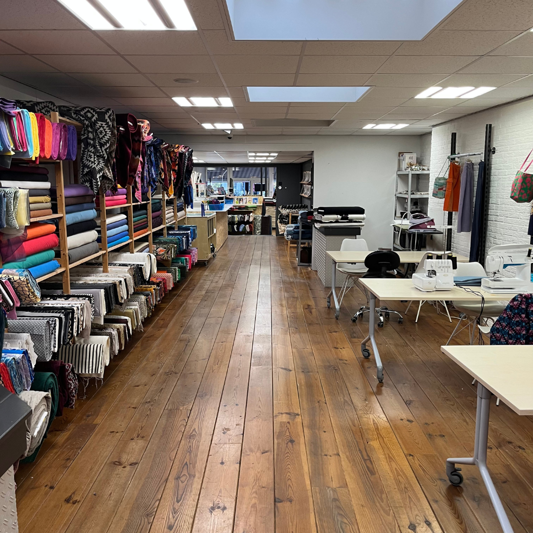 Soms is het gewoon fijner om niet in je eentje te naaien. Want hoe leuk is het om tussen al die mooie stoffen te zitten, met andere mensen die precies snappen waarom jij zo blij wordt van een goed stiksel of een perfecte zoom?