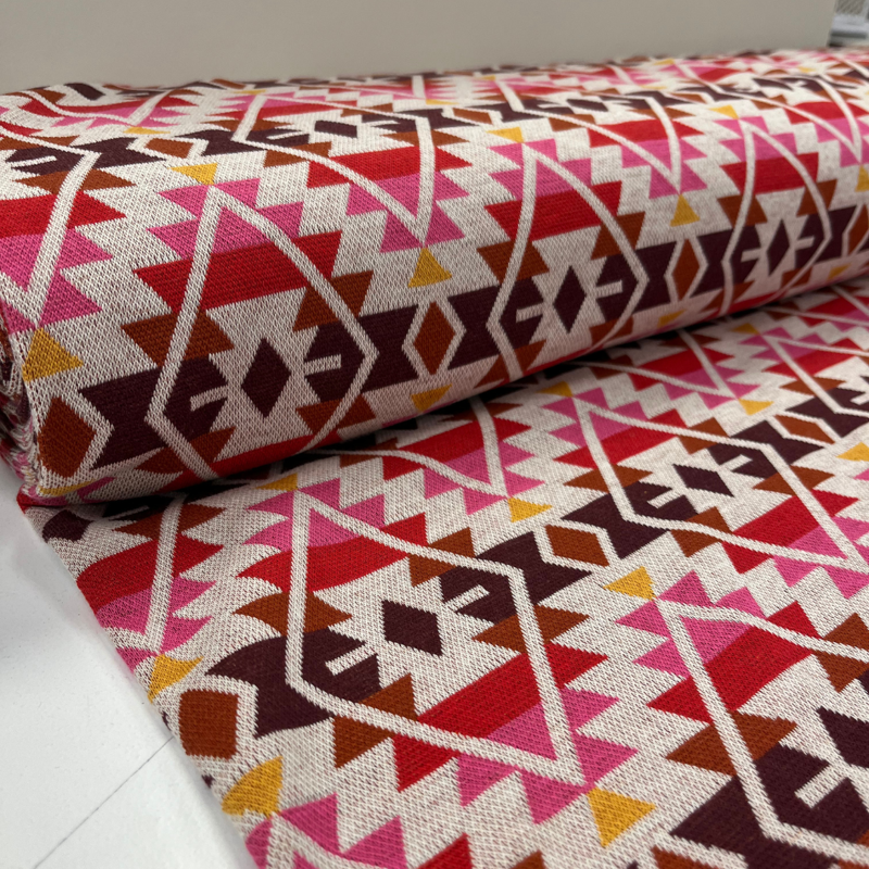 Albstoffe Biologische jacquard "Western Fairy Tales” Field Knit fucshia