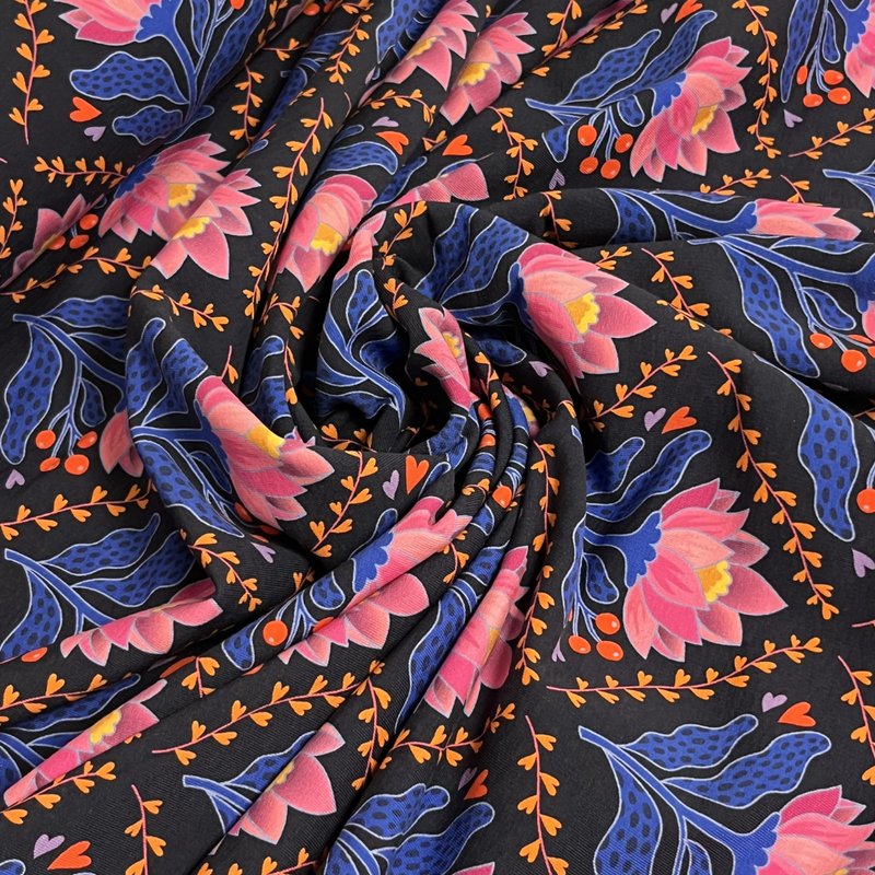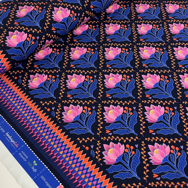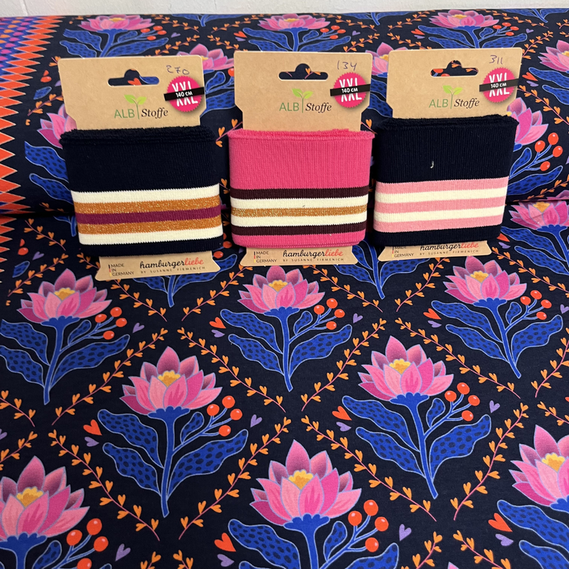 Deze Alb Stoffe Lotus Royale sweatstof (French Terry) is een echte eyecatcher binnen de Queen of heart collectie. De speelse, kleurrijke print geeft deze stof direct energie en creativiteit. Precies zo’n stof waar je blij van wordt.
