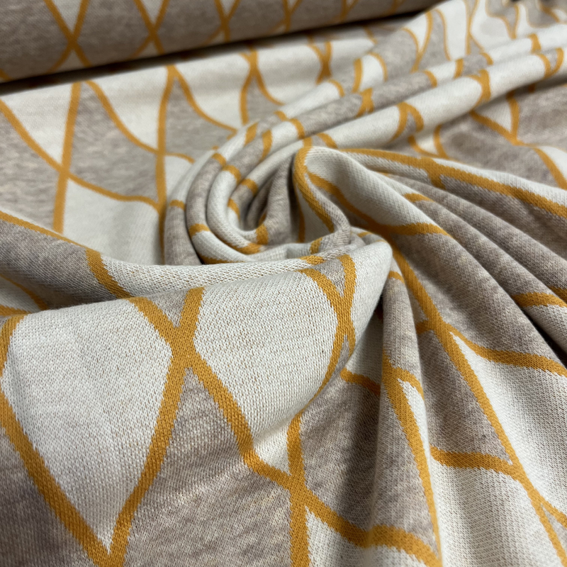 Alb stoffe Biologische jacquard “Harlequin Hearts” oker/beige