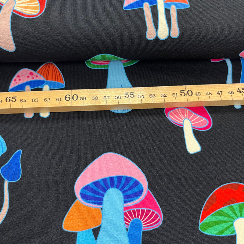 Droom weg met deze vrolijke sweatstof uit de Hand on Heart – Dream collectie van Hamburger Liebe. Het speelse design met kleurrijke paddenstoelen maakt van elk kledingstuk een echte blikvanger. De digitale printtechniek zorgt ervoor dat de kleuren intens en levendig blijven, was na was.