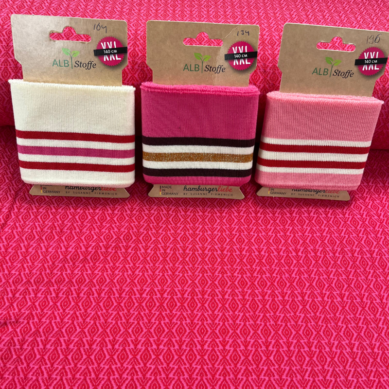 Deze jacquard knit is perfect voor vesten, jurken, truien, rokken of zelfs comfortabele broeken. Combineer hem met de Cuff Me-boordstoffen van ALB Stoffe of met de prints uit dezelfde collectie voor een unieke, stijlvolle look.