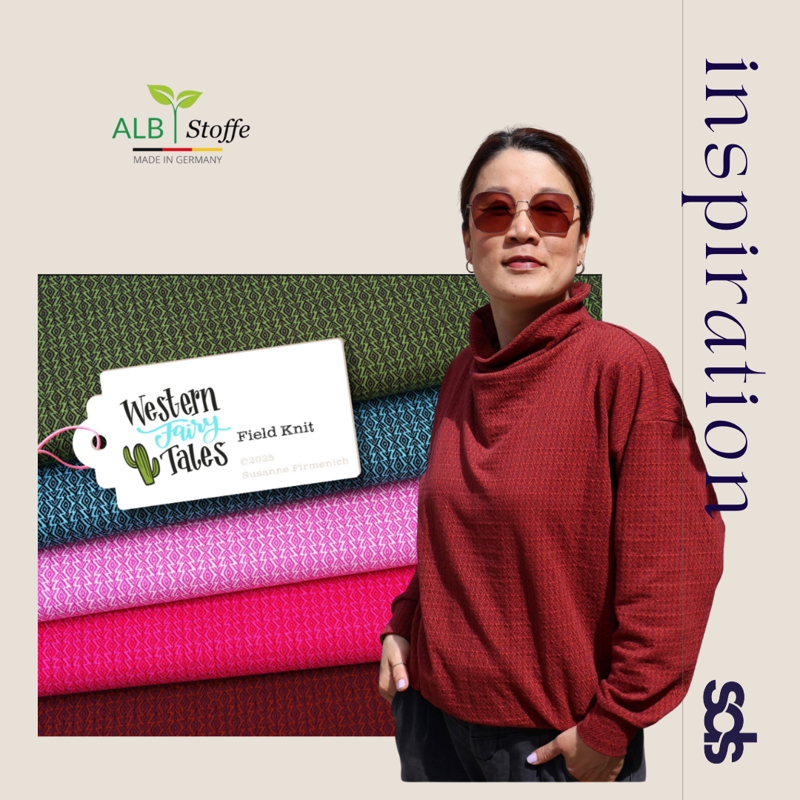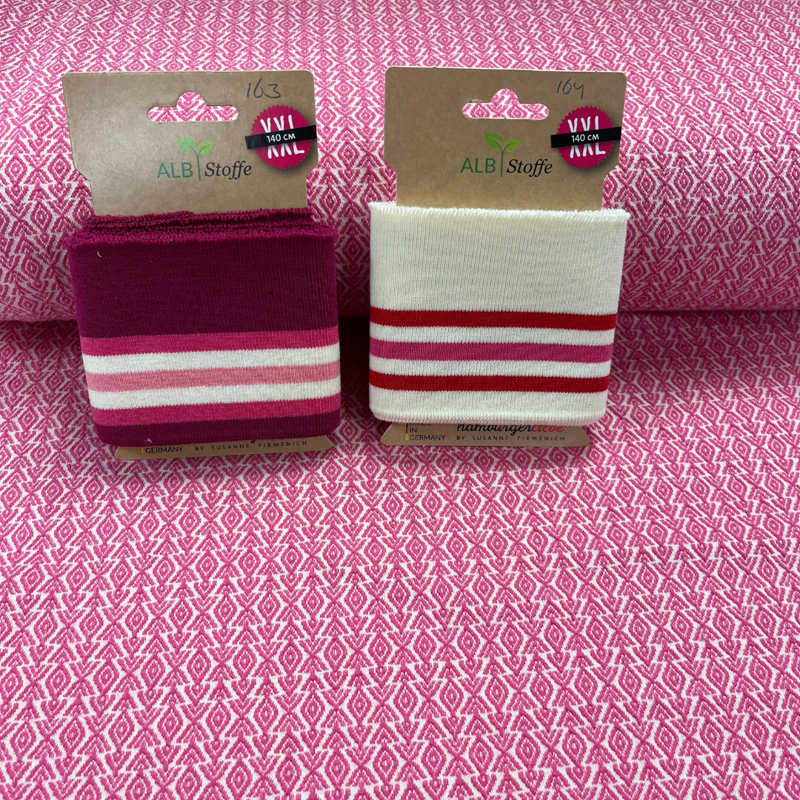 Deze jacquard knit is perfect voor vesten, jurken, truien, rokken of zelfs comfortabele broeken. Combineer hem met de Cuff Me-boordstoffen van ALB Stoffe of met de prints uit dezelfde collectie voor een unieke, stijlvolle look.