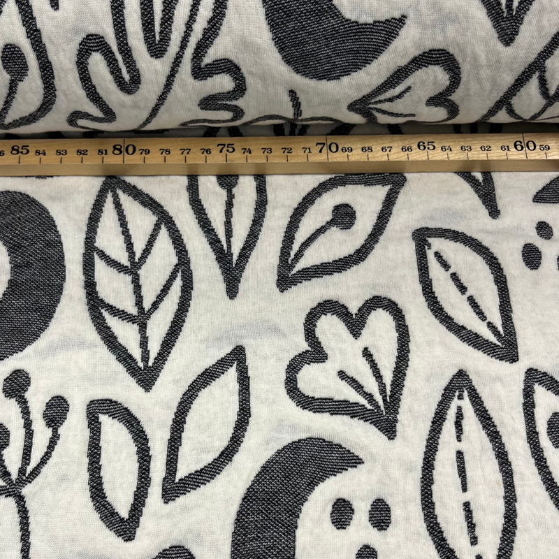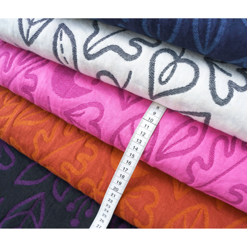 De Woodland Stepper uit de Midnight-collectie van AlbStoffe is een bijzondere, luxe jacquard met een subtiel blad- en natuurmotief. Ontworpen door Hamburger Liebe (Susanne Firmenich) en geproduceerd in Duitsland, combineert deze stof duurzaamheid, kwaliteit en een tijdloos dessin.
