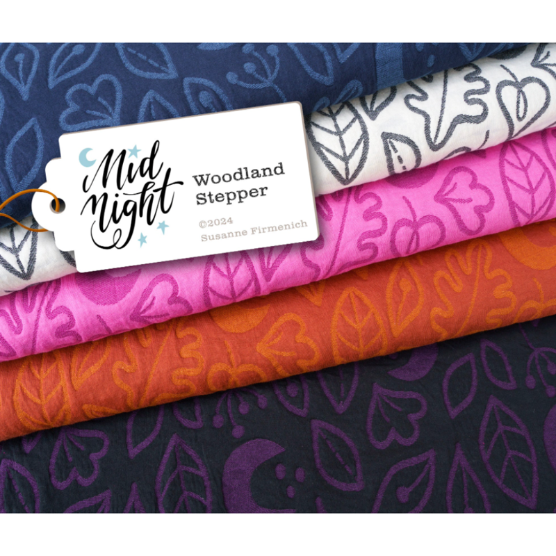 De Woodland Stepper uit de Midnight-collectie van AlbStoffe is een bijzondere, luxe jacquard met een subtiel blad- en natuurmotief. Ontworpen door Hamburger Liebe (Susanne Firmenich) en geproduceerd in Duitsland, combineert deze stof duurzaamheid, kwaliteit en een tijdloos dessin.
