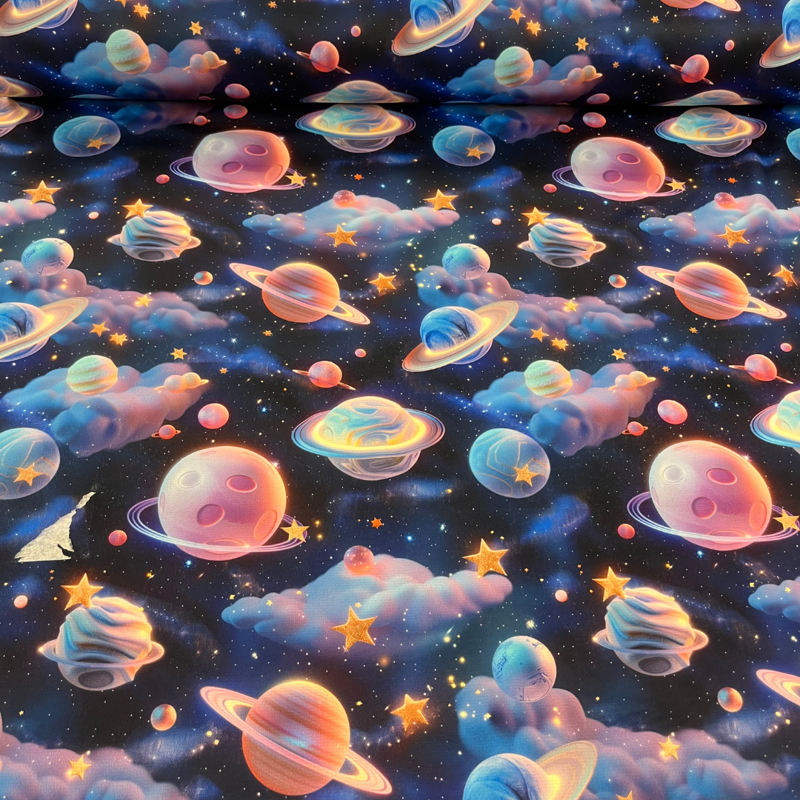 Door de vrolijke en unieke digitale prints krijgt ieder naaiproject een eigen karakter. Perfect voor een vest, hoodie, sweater, joggingbroek of zelfs een jas. De combinatie van katoen en polyester zorgt voor een fijne balans tussen draagcomfort, warmte en duurzaamheid, terwijl het beetje elastaan zorgt voor extra bewegingsvrijheid.