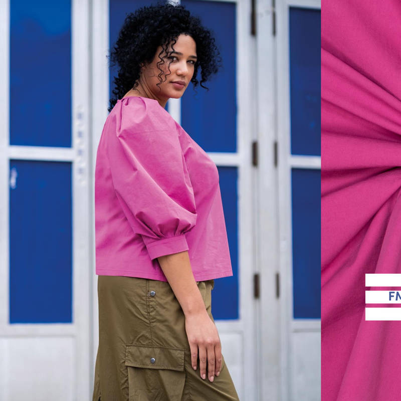 Deze poplin is ideaal voor jurken, blouses, rokken of overhemden met een natuurlijke, zachte look. Ook geschikt voor accessoires zoals kussens, tassen of lichte woondecoratie. De stof is makkelijk te verwerken — gebruik een universele naald maat 70–80 en stik met rechte steken.