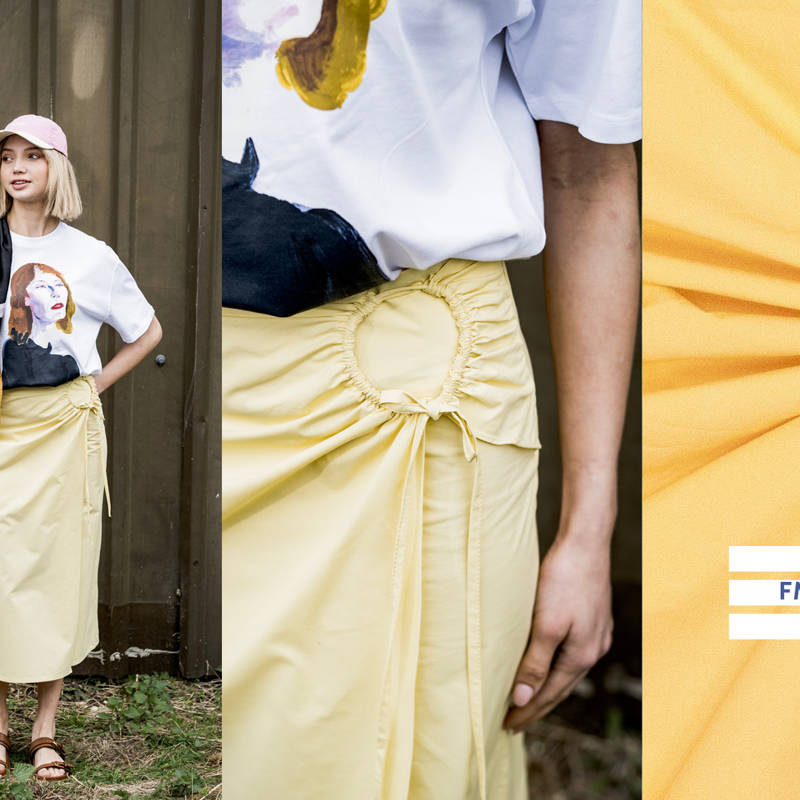 Katoen poplin stonewashed geel