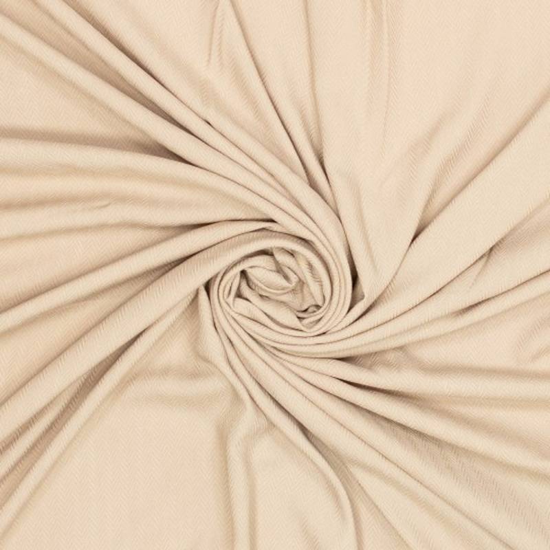 Deze EcoVero viscose met subtiel visgraatmotief is een elegante, soepelvallende geweven stof met een luxe uitstraling. De fijne herringbone-structuur geeft net dat beetje extra zonder overheersend te worden, waardoor de stof prachtig tot zijn recht komt in zowel simpele als meer uitgesproken kledingstukken.