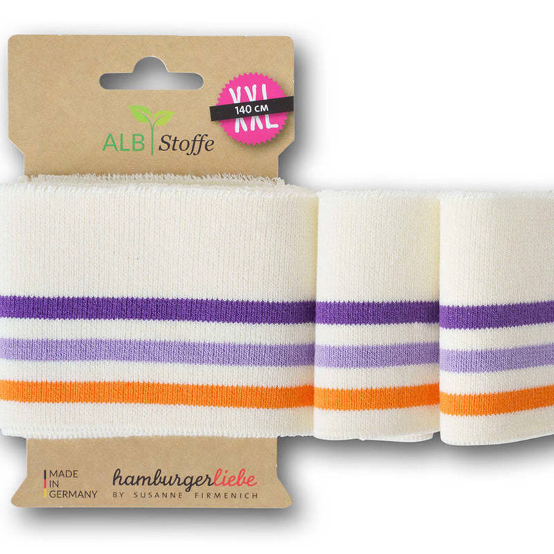 Gebruik ze bijvoorbeeld voor halsboorden, mouwboorden, taillebanden of als zoomafwerking bij sweaters, jassen, jurken en kinderkleding. Dankzij de voorgecoördineerde kleuren en strepen passen ze perfect bij de stoffen uit de Albstoffe collecties, maar ze zijn natuurlijk ook heel mooi te combineren met andere tricot en French terry stoffen.