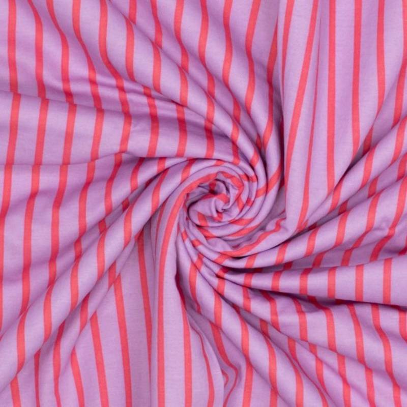 Gebreide viscose Ecovero ‘stripes’ roze/lila