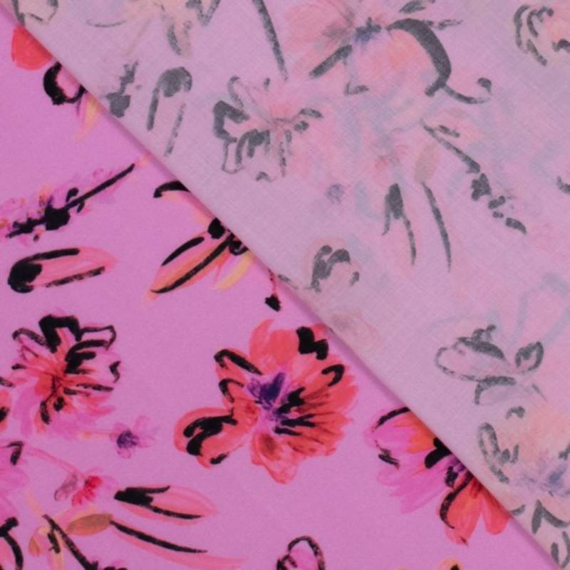 Geweven Tencel bloemen roze