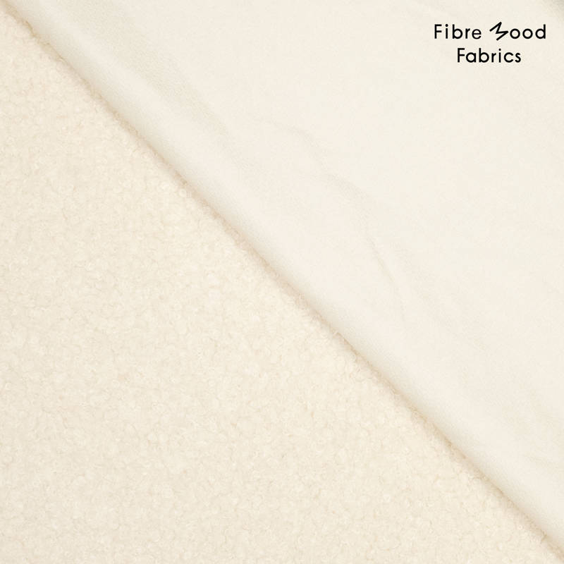Door de knit-basis is deze bouclé stof soepel, comfortabel en makkelijker te verwerken dan traditionele, stugge bouclé jasstoffen. De crème/vanille tint (kleur 40:40) maakt hem tijdloos en stijlvol, precies zoals in de inspiratie uit Fibre Mood. Ideaal voor zowel minimalistische ontwerpen als meer opvallende wintermodellen.