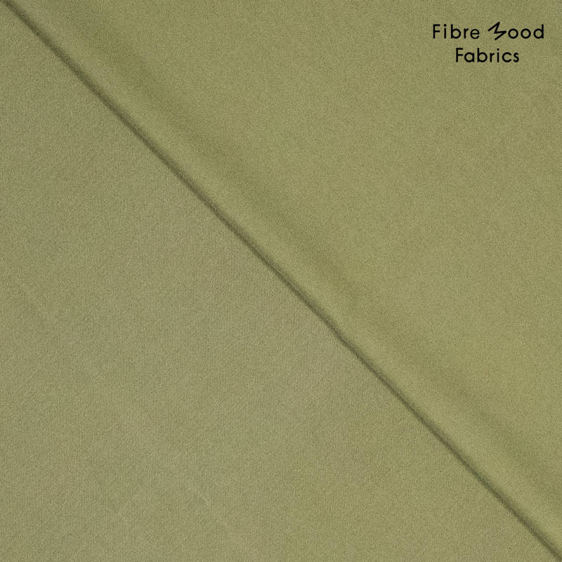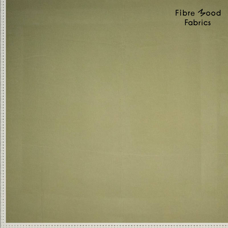 Deze khaki woven viscose-polyester stof uit Fibre Mood 36 heeft een prachtige tencel-achtige uitstraling: soepel, zacht, licht glanzend en heerlijk comfortabel om te dragen. Door de mix van 93% viscose en 7% polyester valt de stof mooi recht naar beneden, kreukt hij minder dan pure viscose en blijft hij extra sterk.