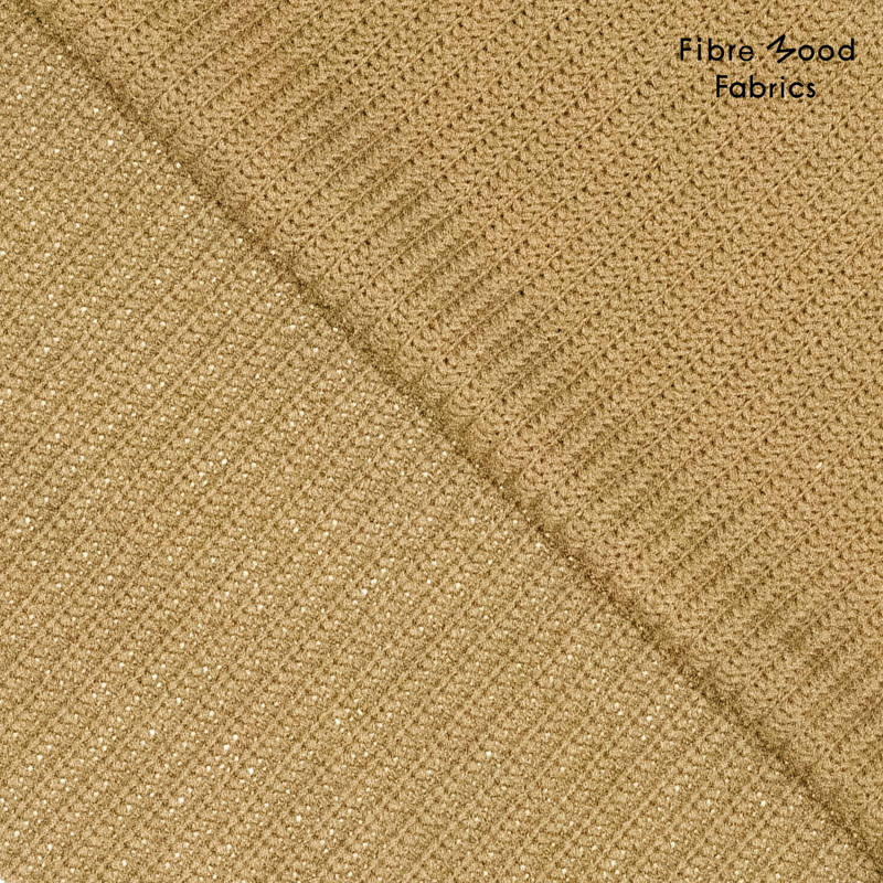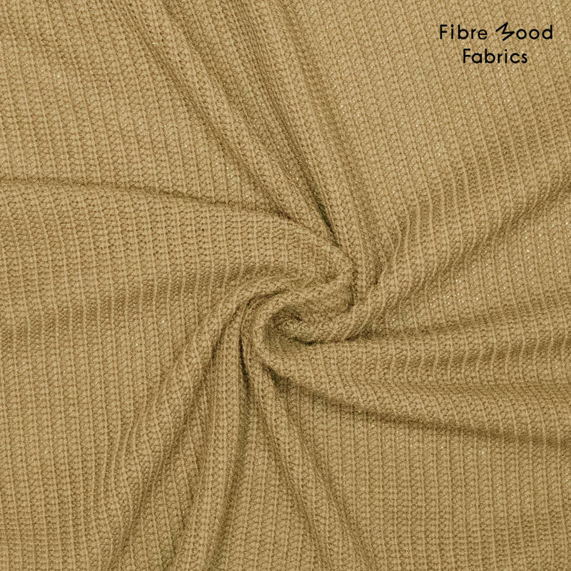 Deze goudkleurige coarse knitted stof is een grofgebreide kwaliteit met een stevige structuur en een luxe uitstraling. Coarse knitted betekent dat de stof is gebreid met grovere, grotere steken, waardoor de knit meer textuur, volume en zichtbaar patroon heeft dan fijngebreide stoffen. Dit geeft je kledingstuk een robuust, modern en warm karakter, ideaal voor ontwerpen die een beetje body nodig hebben.