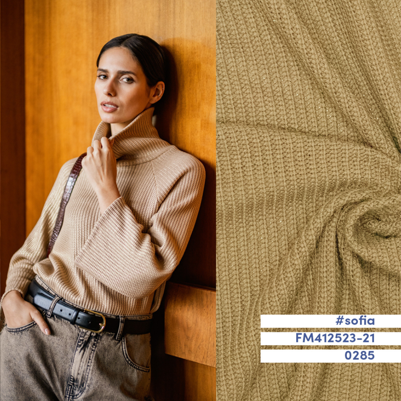 De goudkleurige coat geeft een subtiele glans zonder overheersend te zijn, waardoor deze stof zowel casual als feestelijk gecombineerd kan worden. Van een warme wintertrui tot een chique vest over een blouse: deze knit tilt elk project naar een hoger niveau.