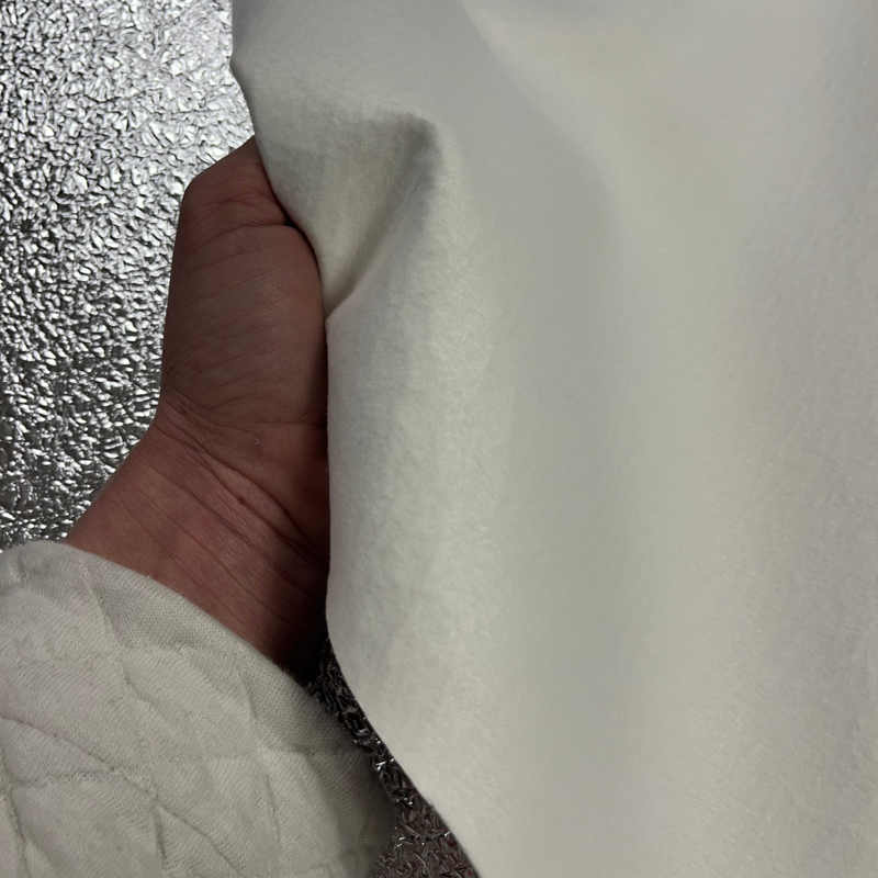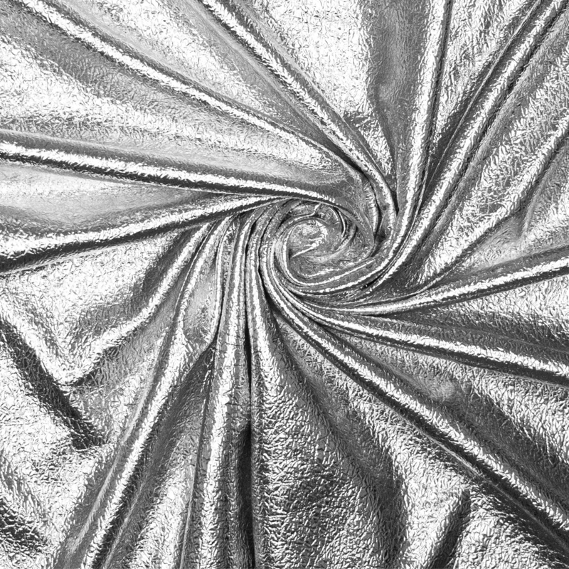 Deze bijzondere foil-stof is een echte blikvanger voor iedereen die houdt van een uniek en modern effect. De bovenlaag heeft een metallic silver foil met een subtiele crackle-structuur, waardoor het oppervlak speels breekt in het licht. Perfect voor creatieve projecten waarbij je net dat beetje extra glam zoekt.
