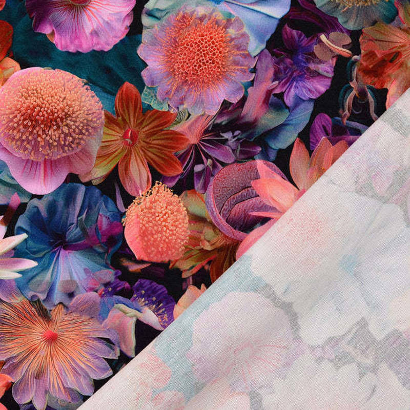 Een explosie van kleur en luxe zachtheid in één stof. Deze digitale print French Terry met bloemenprint is een echte blikvanger en voelt heerlijk comfortabel aan. Gemaakt van 95% katoen en 5% elastaan en met een gewicht van 250 g/m², waardoor hij stevig genoeg is voor sweaters en jurkjes, maar toch soepel valt en prettig draagt.