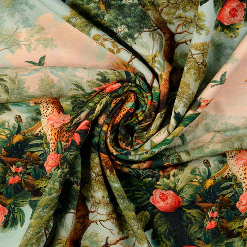 De print is rijk, gedetailleerd en vol leven: exotische bloemen, jungle-groen en elegante dieren vormen samen een prachtig schilderachtig geheel. Een luxe uitstraling, zonder in te leveren op draagcomfort.