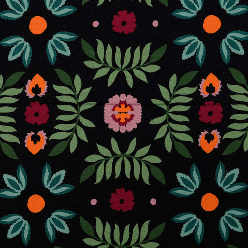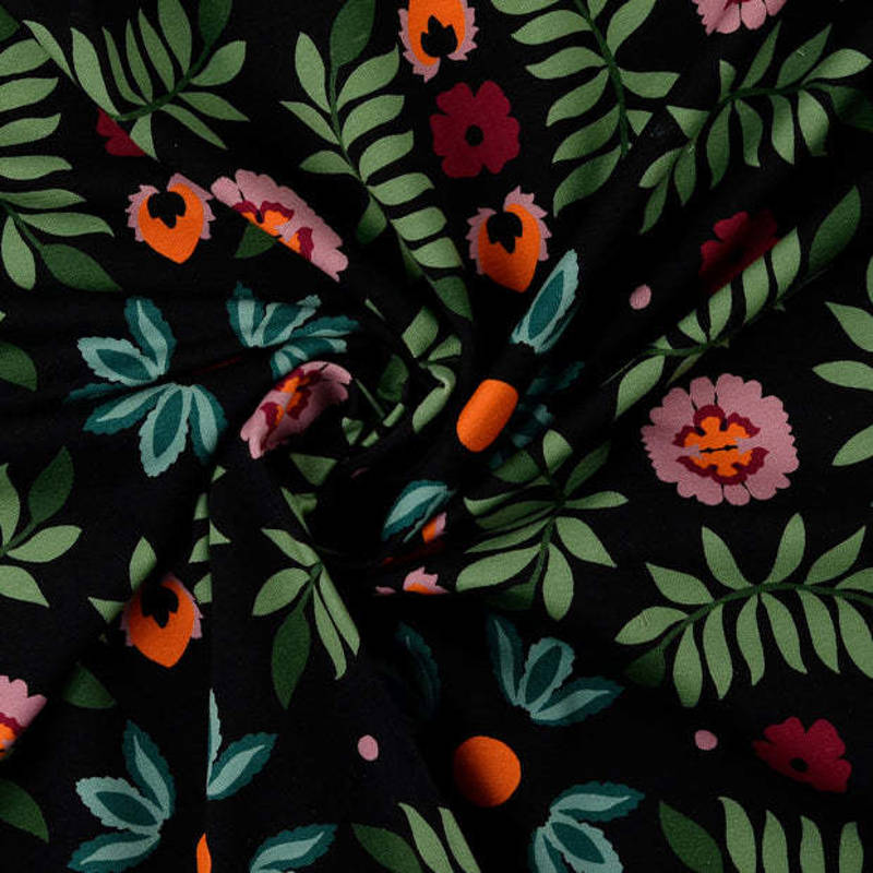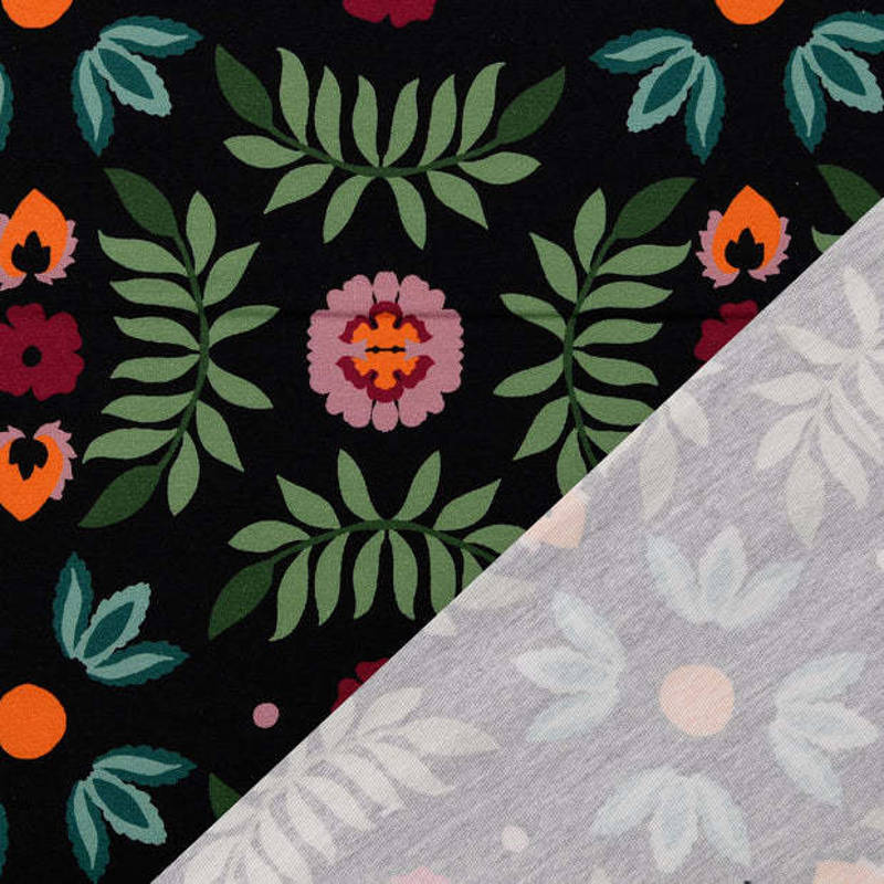 Een frisse, vrolijke en toch chique print: deze French Terry met retro bloemenmotief heeft een prachtige zwarte basis. Een verrassend tijdloos dessin dat zowel speels als stijlvol draagt.