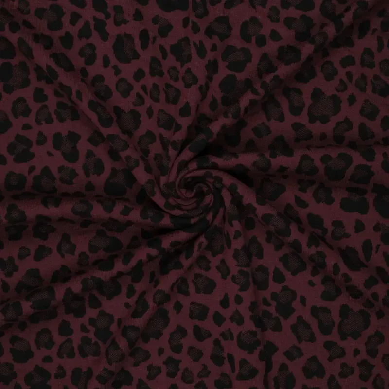De burgundy ondergrond met zwarte panterprint geeft je creaties een stoere, maar toch stijlvolle uitstraling. Perfect voor een heerlijke trui, een comfortabel vest of een nonchalante huisjurk – maar ook ideaal voor gilets of andere zelfmaakmode die nét dat beetje extra mag hebben.