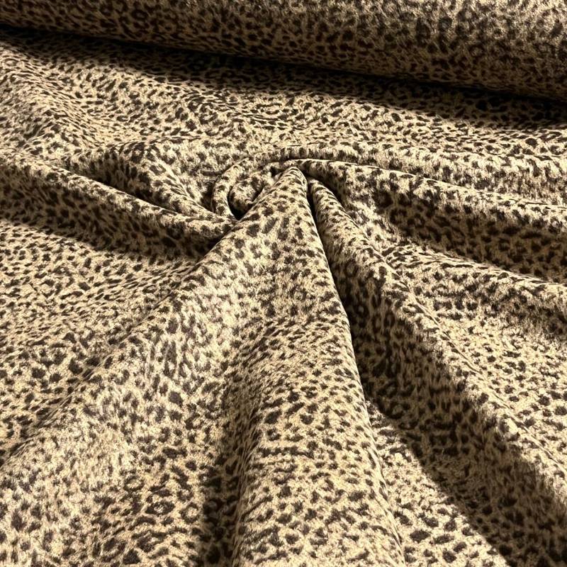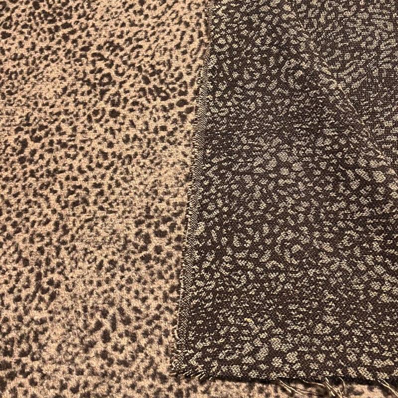 Deze jacquard is er eentje die meteen de aandacht pakt. Een prachtige, geweven kwaliteit met een subtiel animal-achtig dessin in warme bruine en zwarte tinten. Doordat de stof jacquard-geweven is, heeft hij net dat beetje luxe en structuur zonder overheersend te zijn.