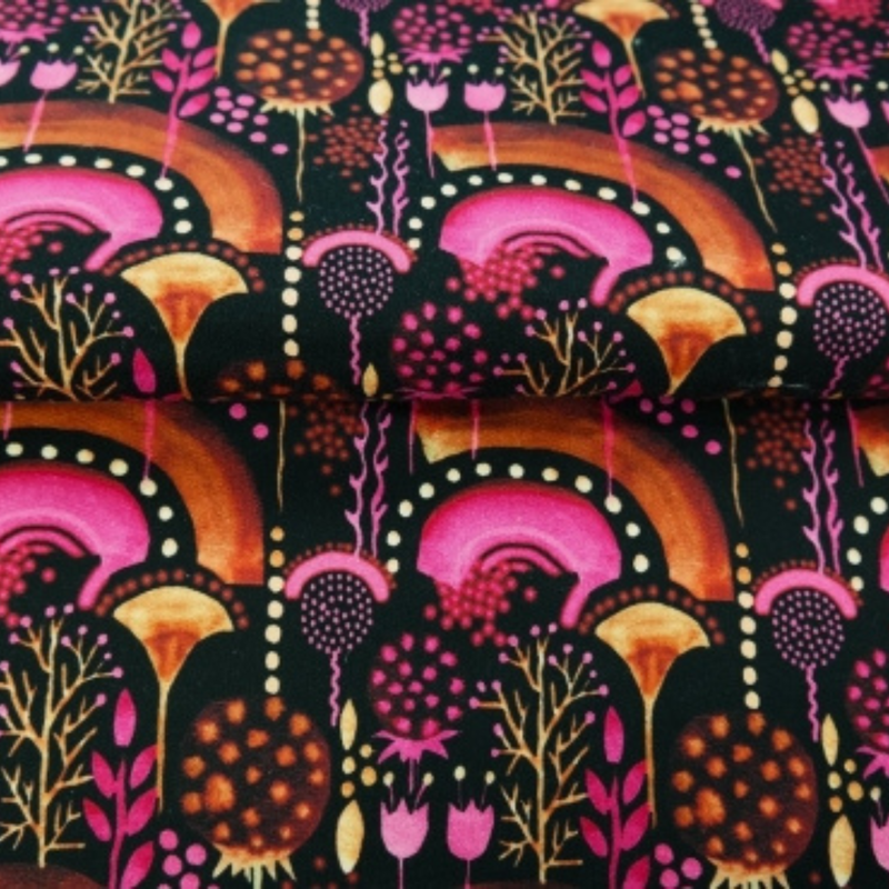 Deze digitale print joggingstof is een heerlijke kwaliteit voor al je zelfmaakmode-projecten. De stof bestaat uit 80% katoen en 20% polyester, heeft een gewicht van 280 gr/m² en een breedte van 150-155 cm. De binnenkant is zacht opgeruwd, waardoor de stof comfortabel draagt en lekker warm is.