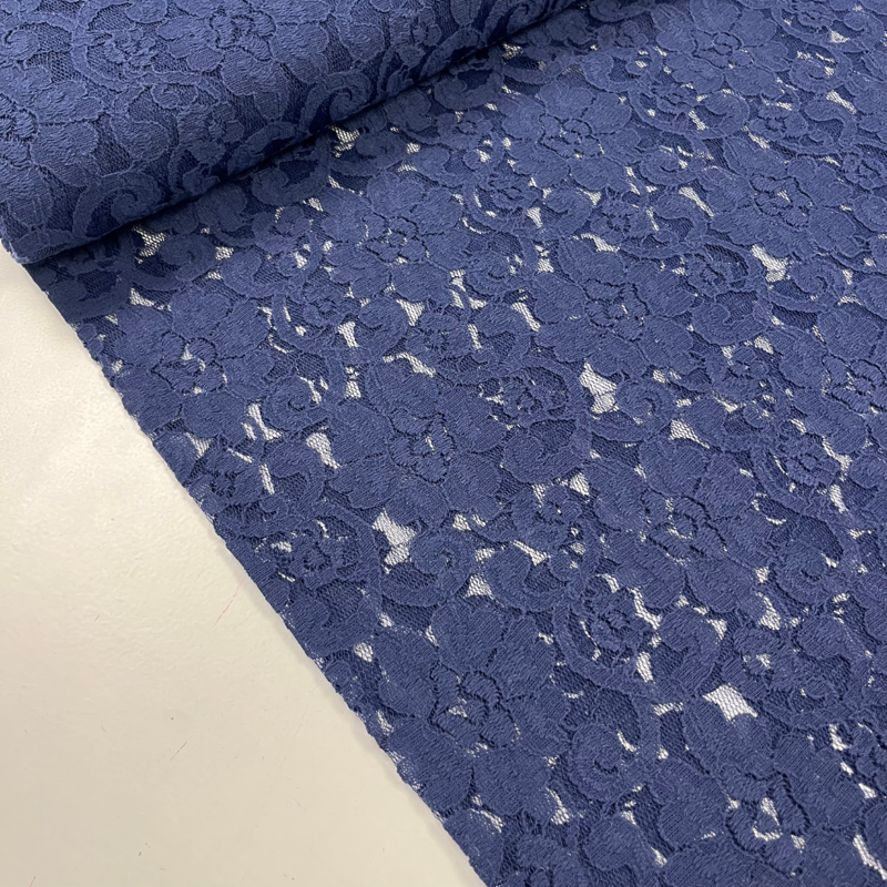 Deze mooie rekbare kantenstof is gemaakt van een zachte katoenmix (67% katoen, 27% polyamide, 6% elastan)