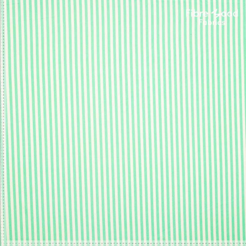 Deze 100% katoenen poplin met frisse mintgroene strepen is een echte zomerse topper. De stof voelt licht en glad aan, zoals je van poplin mag verwachten, en draagt heerlijk luchtig. De fijne structuur en het strakke streepdessin geven elk kledingstuk een frisse, klassieke uitstraling.
