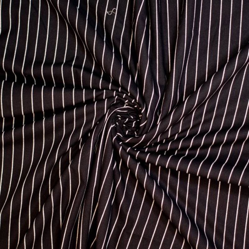 Deze geweven katoenmix heeft een klassiek streep-dessin dat altijd goed is. Tijdloos, netjes en toch heel veelzijdig. De stof voelt licht en soepel aan en met zijn 150 gram per m² valt hij in dezelfde categorie als een fijne blousestof. Daardoor is hij ideaal voor blouses, tunieken, luchtige jurken, rokken, jumpsuits of een zomerse broek.