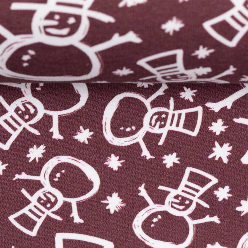 French Terry sneeuwpoppen bordeaux
