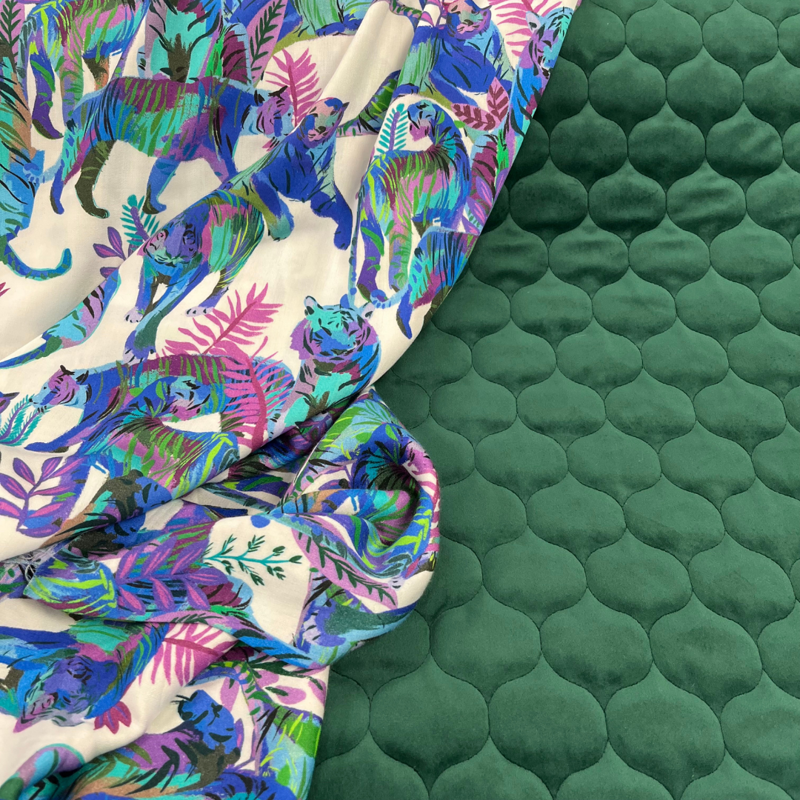 Met dit luxe naaipakket maak je een elegante én speelse Junna van Bel’Etoile. De buitenkant bestaat uit een rijke, zachte velvet quilt met een prachtige 3D-structuur. De binnenkant is gevoerd met een heerlijk soepele viscose . De combinatie van luxe buitenstof en luchtige voering zorgt voor een stijlvol, comfortabel en uniek kledingstuk dat zowel chic als fun is.