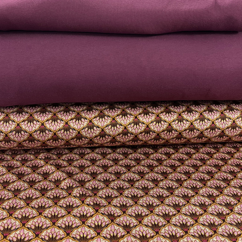 Met dit naaipakket maak je een comfortabele dames sweater met net dat beetje extra. De sweater is gebaseerd op het Hera patroon van bel'etoile en combineert een zachte, warme joggingstof met luxe Punta mouwen met een lotus dessin. De gouden accenten in de print geven de sweater een chique uitstraling, terwijl het model gewoon lekker draagbaar blijft. Perfect voor een fijne trui die je zo uit de kast trekt, maar toch bijzonder aanvoelt.
