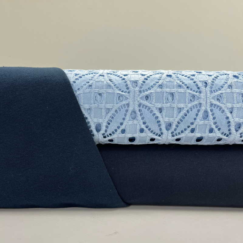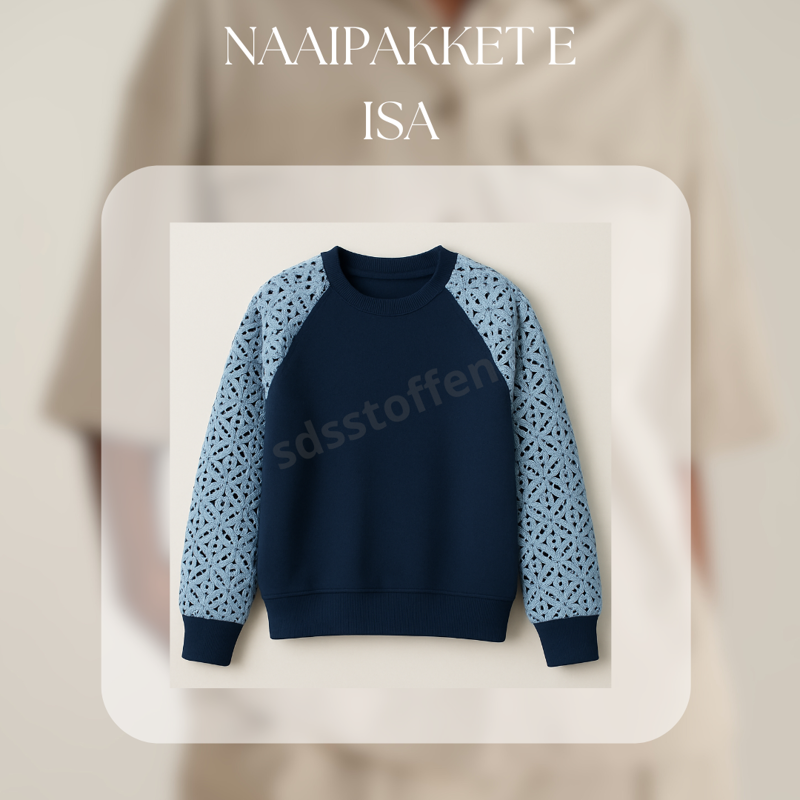 Artikelnummer:Naaipakket Isa sweater E, blauw, babyblauw