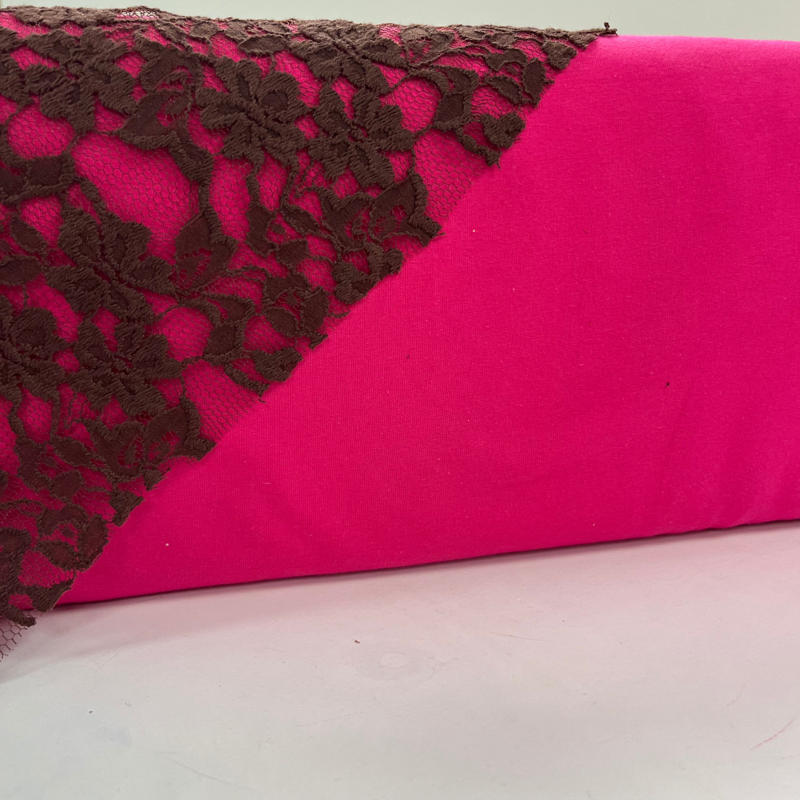 De French Terry vormt de basis van het ontwerp en het kant zorgt voor een chique, modern effect doordat de onderstof subtiel doorschijnt.