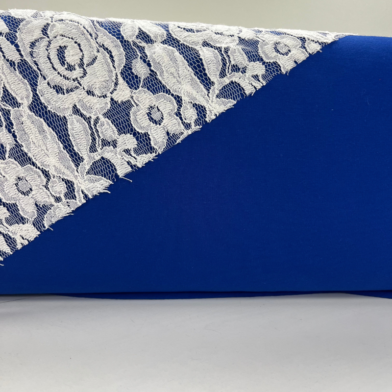 De French Terry vormt de basis van het ontwerp en het kant zorgt voor een chique, modern effect doordat de onderstof subtiel doorschijnt.
