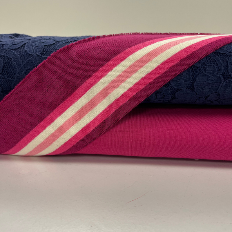 Naaipakket Isa Sweater Roze french terry en blauw kant, maat 42 t/m 48