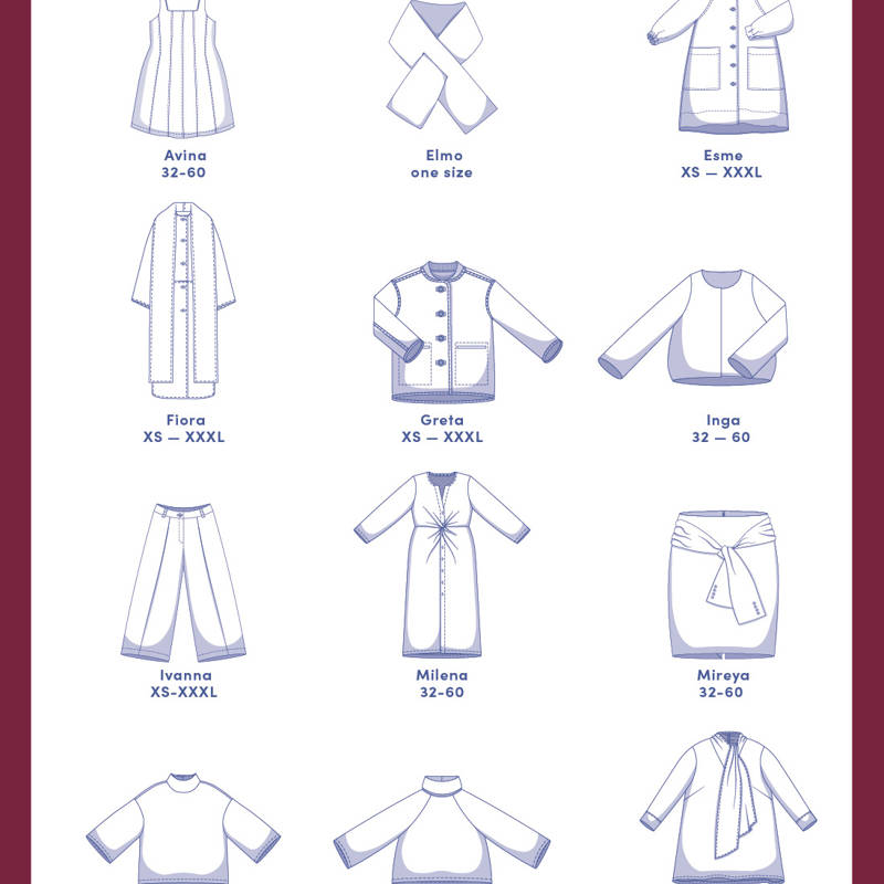 In deze editie vind je een prachtige mix van ontwerpen. Denk aan de speelse Milena-overgooier, de cosy jassen zoals Esme, Fiora en Inga, en de verfijnde ontwerpen Greta, Mireya en Ivanna met hun bijzondere details. Patronen zoals Samira en Zizou zorgen voor tijdloze, elegante everyday looks, terwijl Elmo juist een trendy touch aan je zelfgemaakte garderobe geeft.