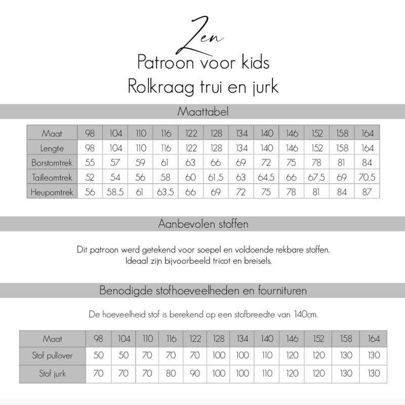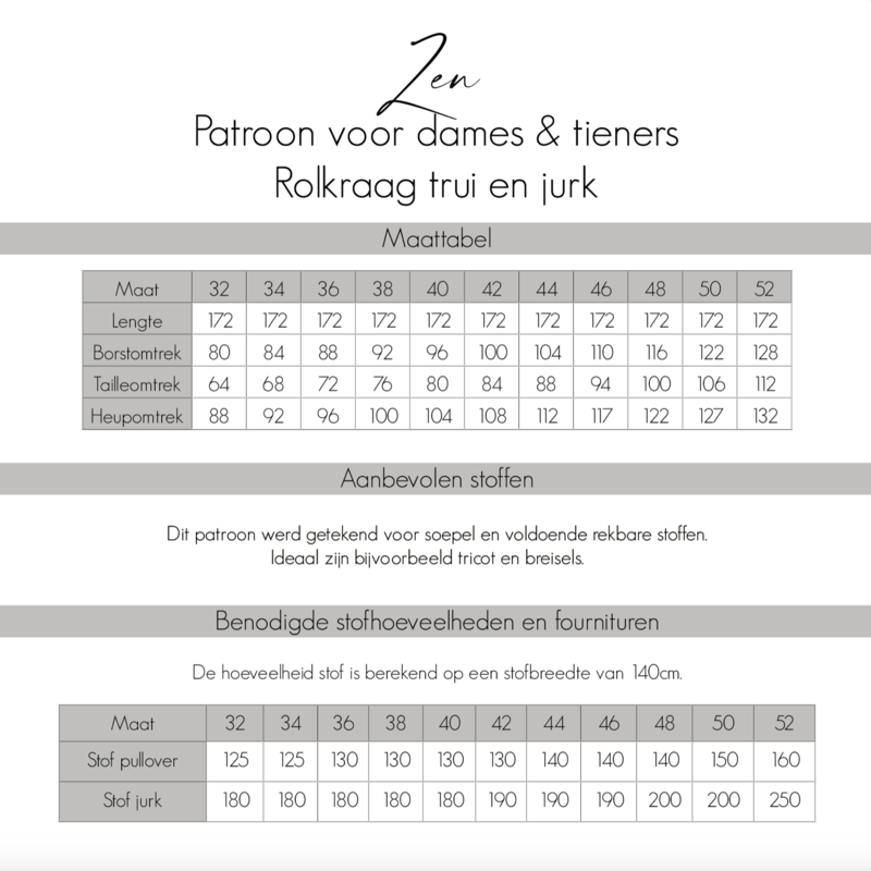 Bel’etoile Zen naaipatroon voor dames, tieners en kids