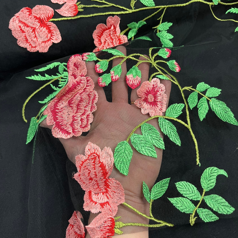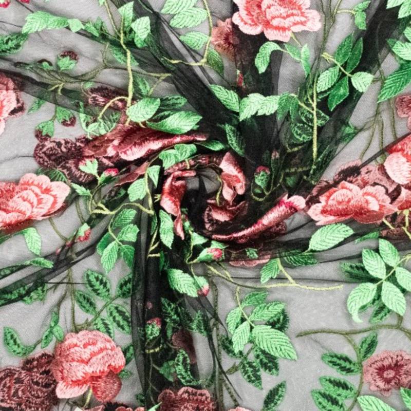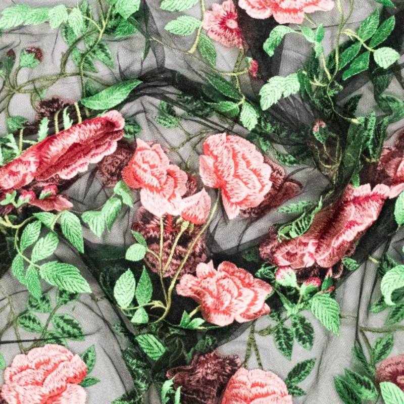 Deze geborduurde mesh is pure luxe. Een verfijnde, transparante basis met rijk geborduurde bloemen die direct opvallen door hun diepte en detail. De borduursels geven de stof een exclusieve uitstraling en maken elk kledingstuk meteen bijzonder.
