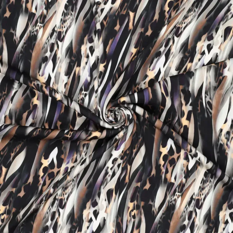 De print geeft deze stof extra karakter en diepte. Het dessin is levendig en modern, met een verfijnde uitstraling die perfect past bij statement kledingstukken. Ideaal voor jurken, blouses, rokken en losvallende broeken waarbij de print echt mag spreken. Dankzij de stretch draagt de stof prettig en beweegt hij fijn mee.