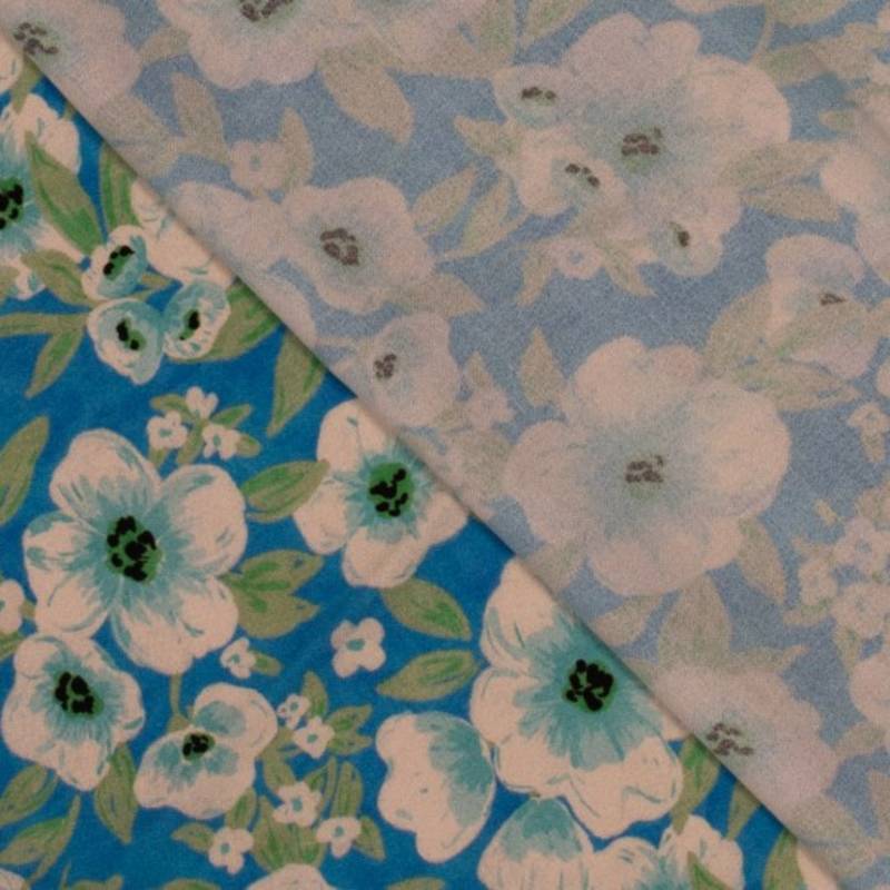 Deze prachtige viscose stof springt direct in het oog door de bloemen.