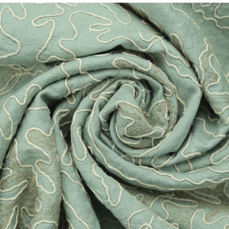 Structuur: Licht reliëf met geborduurd patroon