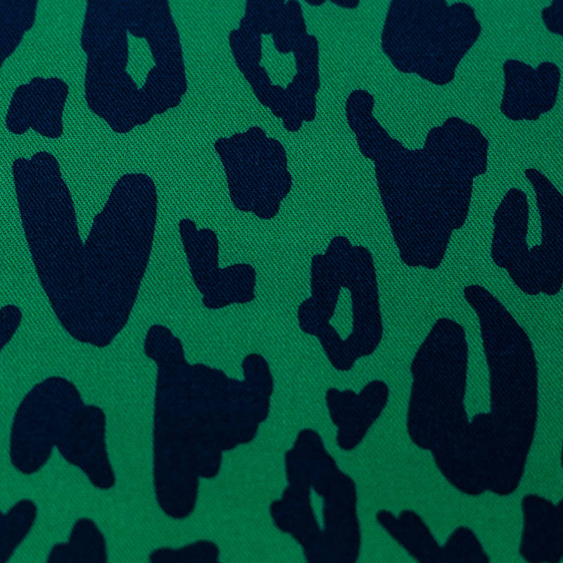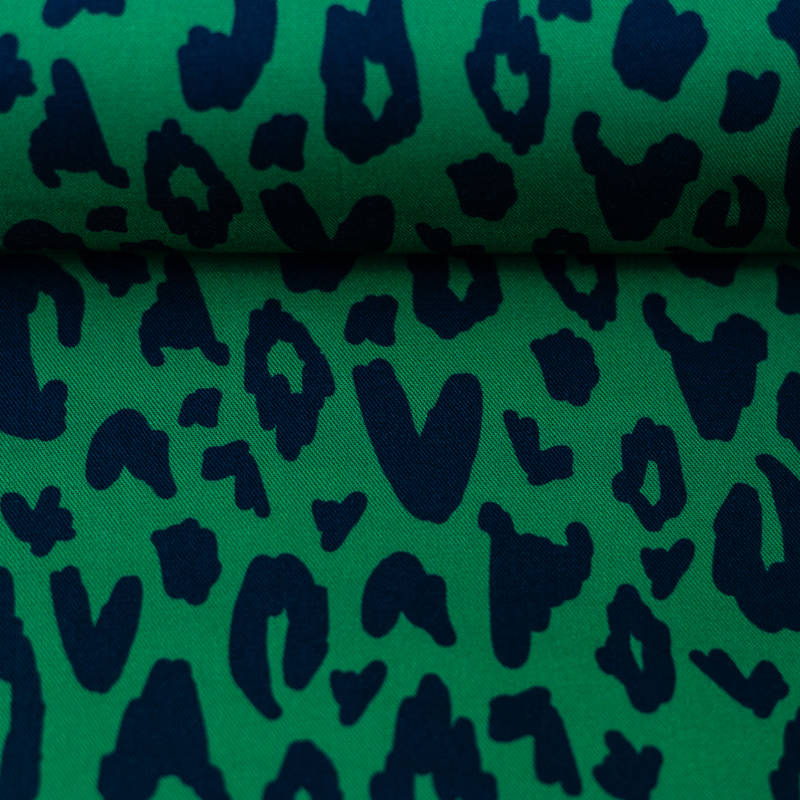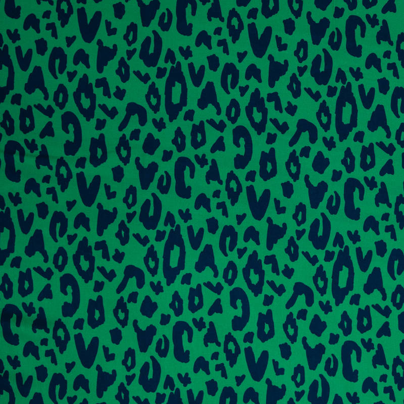 Deze 100% viscose met het populaire Happy Leo dessin van Cherry Picking is er eentje die meteen opvalt. De felle groene ondergrond gecombineerd met de donkerblauwe leopardvlekken geeft de stof een moderne, speelse en stoere uitstraling. Perfect voor iedereen die houdt van kleur en print met lef.