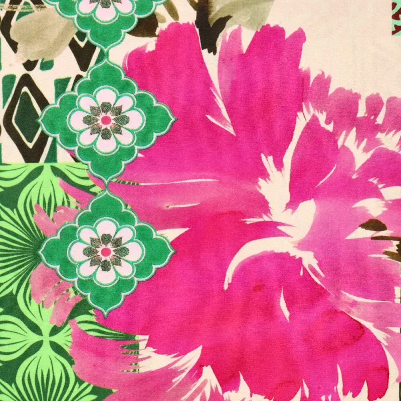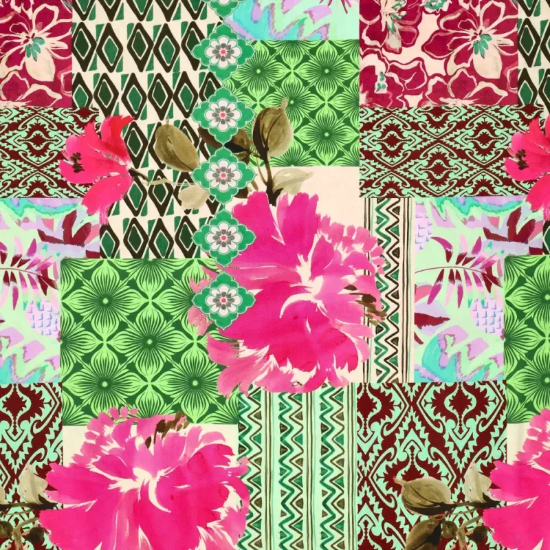 Viscose poplin stretch patchwork fuchsia