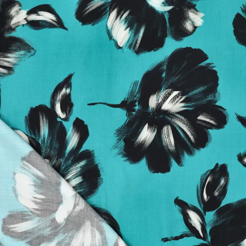 Deze viscose satijn met bloemenprint is een echte blikvanger. De stof heeft een prachtige, subtiele glans en voelt heerlijk soepel en zacht aan. Door de satijnbinding valt de stof mooi langs het lichaam en geeft hij elk kledingstuk een luxe, vrouwelijke uitstraling.