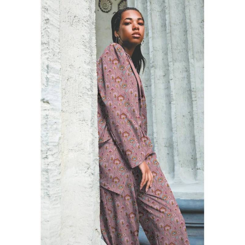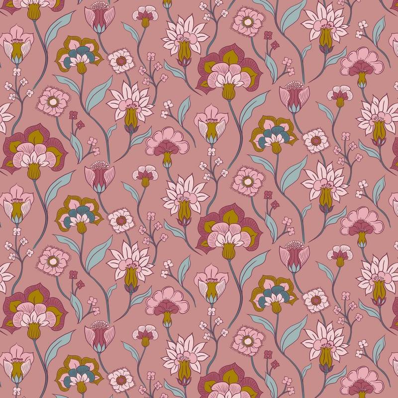 Een rijke, bloemrijke print met een warme, zachte kleurstelling. Door het dessin oogt de stof vrouwelijk en elegant, met een tijdloze uitstraling.