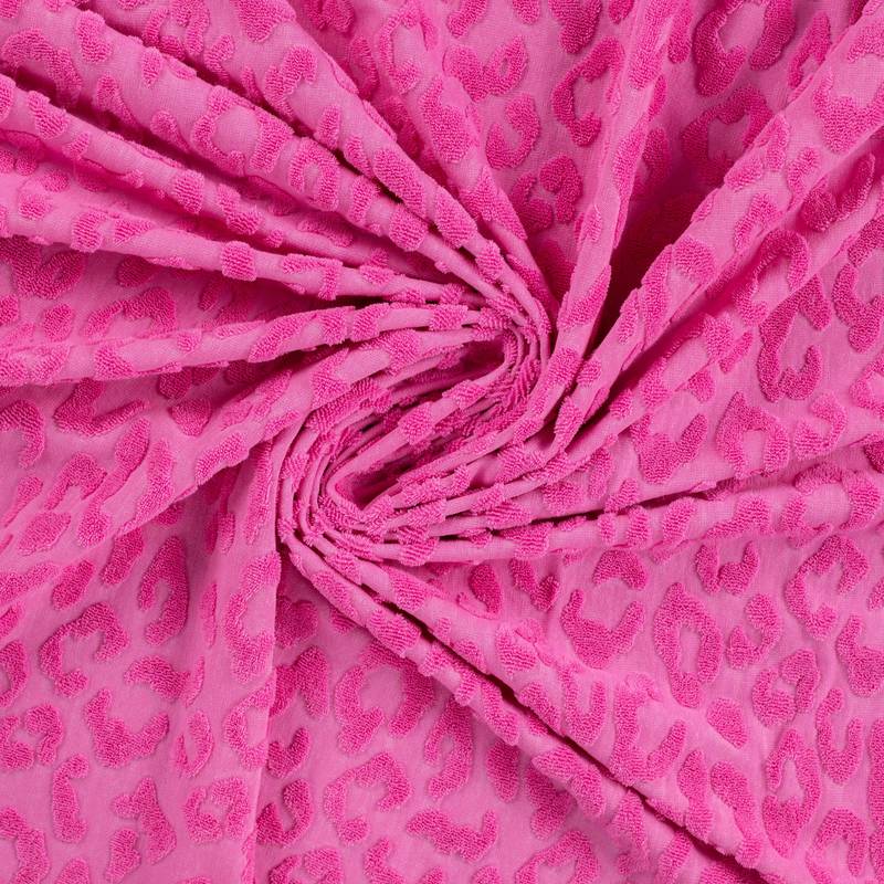 Deze gebreide jacquard is er eentje waar je meteen vrolijk van wordt. De ingeweven panterprint geeft de stof een leuke, speelse uitstraling . Ze liggen subtiel bovenop de stof, wat zorgt voor een mooie structuur en een hoogwaardige look.