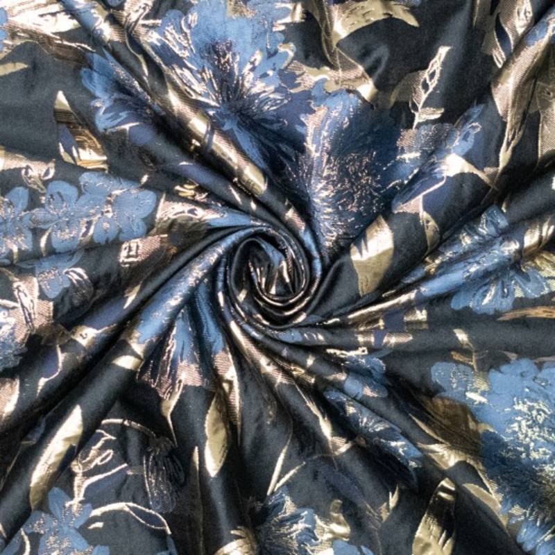 Geweven jacquard bloemen blauw
