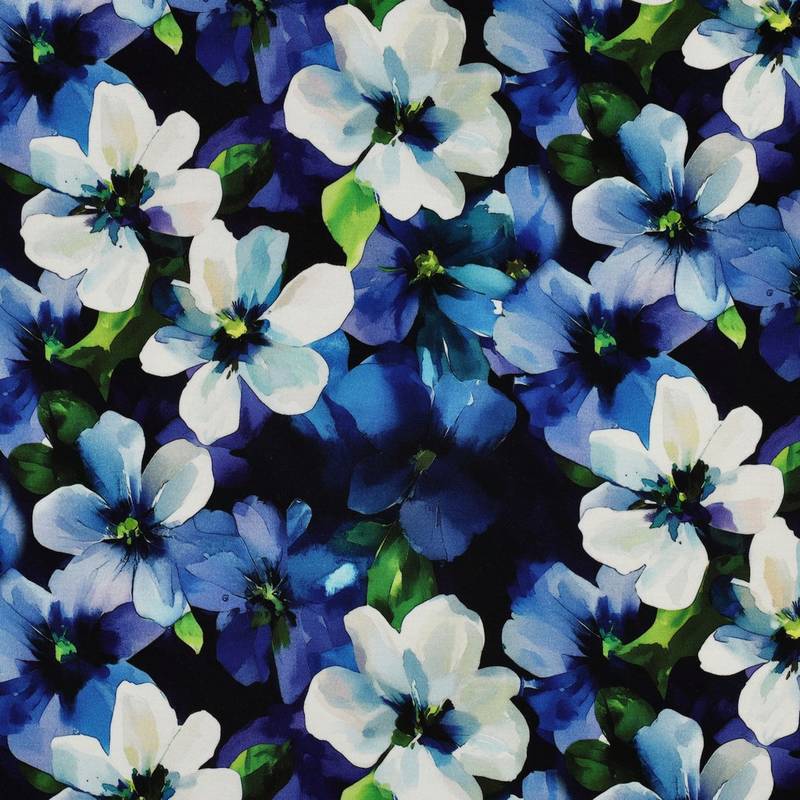 Deze punta di roma met retro bloemenprint is een echte eyecatcher. De bloemen geven de stof een speelse maar stijlvolle uitstraling, terwijl de kwaliteit zorgt voor comfort en draagbaarheid. De stof voelt stevig aan, heeft een mooie body en valt tegelijkertijd soepel, waardoor kleding mooi in model blijft.